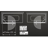 Vanová zástěna oboustranně otevíratelná s pevnou částí.