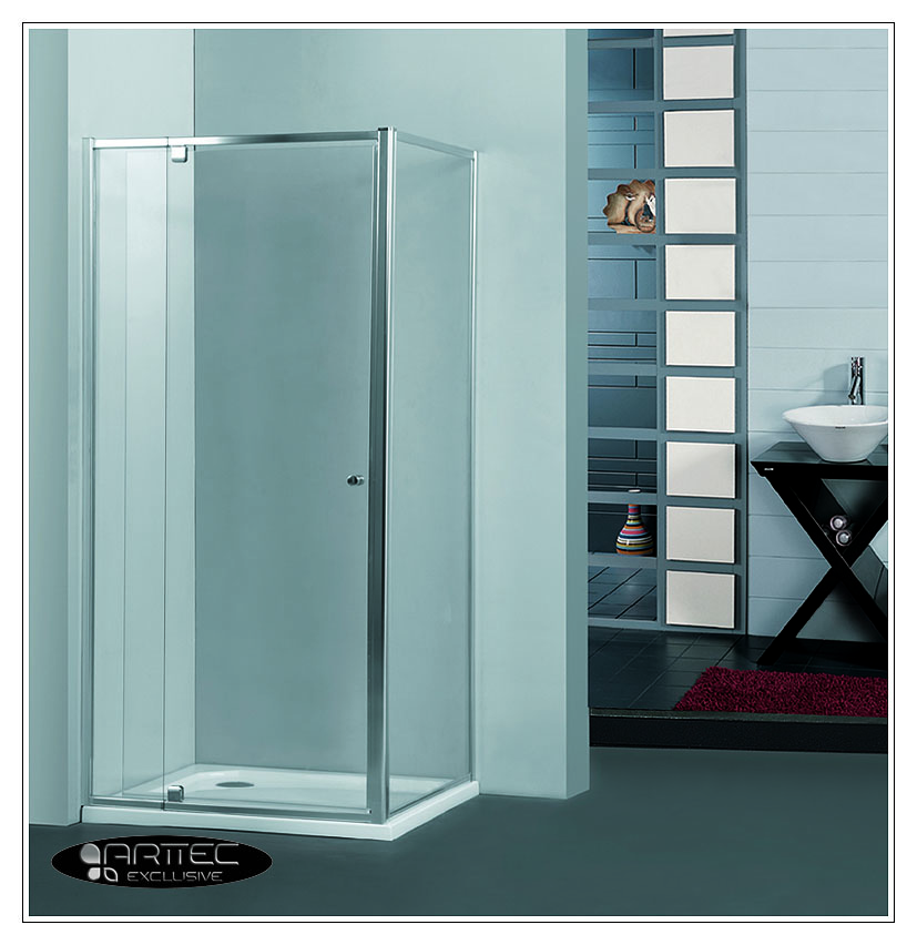 Nastavitelný boční pevný díl pro sprchové dveře do niky Athena je vyroben ze 4 mm silného čirého tvrzeného skla, které je vsazeno do chromového rámu.