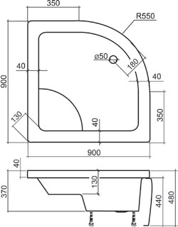 Čtvrtkruhová hluboká sprchová vanička