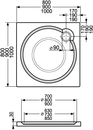 Čtvercová sprchová vanička Roltechnik MACAO-M 100