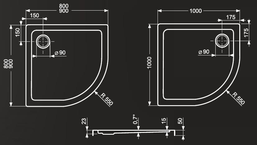 Čtvrtkruhová sprchová vanička Roltechnik FLAT ROUND 80