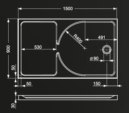 Obdélníková sprchová vanička Roltechnik WALK IN 150x90