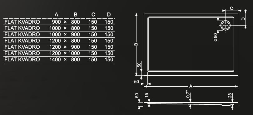 Obdélníková sprchová vanička Roltechnik FLAT KVADRO o 120x100
