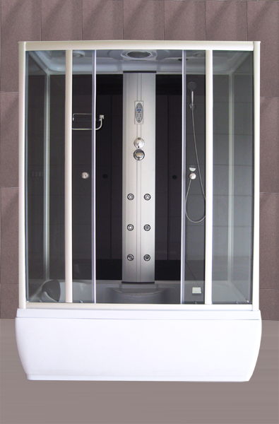 Obdélníkový celoskleněný masážní box (kombinace vany a masážního boxu)