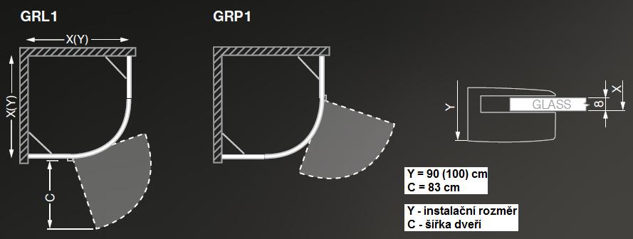 Čtvrtkruhový sprchový kout s jednokřídlými dveřmi Roltechnik GRL1 90