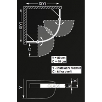 Sprchový kout čtvrtkruhový s dvoukřídlými dveřmi.