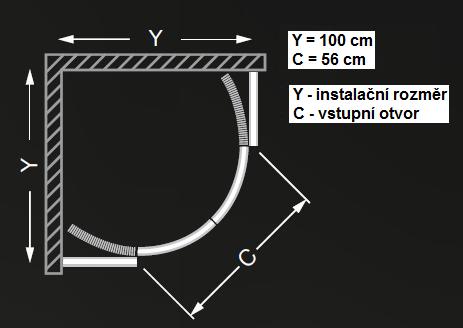 Čtvrtkruhový sprchový kout s dvoudílnými posuvnými dveřmi Roltechnik ECR2 100 (výška 185)