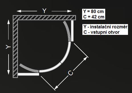 Čtvrtkruhový sprchový kout s dvoudílnými posuvnými dveřmi Roltechnik CR2 80