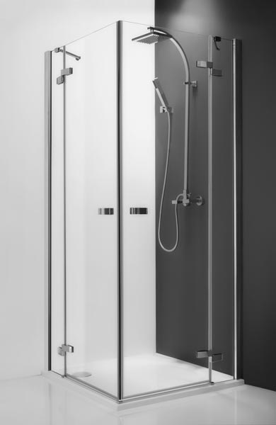 Sprchový kout čtvercový s dvoukřídlými dveřmi.
