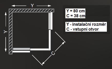 Sprchový kout čtvercový s posuvnými dveřmi.