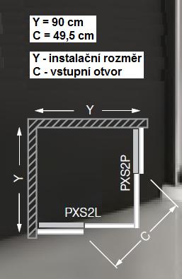 Produkt se skládá ze dvou polovin PXS2L + PXS2P, které jsou baleny samostatně a každá má svoji cenu. Díky tomu lze snadno vytvořit čtvercový nebo obdélníkový sprchový kout.