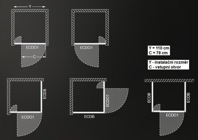 Sprchové dveře jednokřídlé pro instalaci do niky nebo pro kombinaci s pevnou stěnou ECDB.