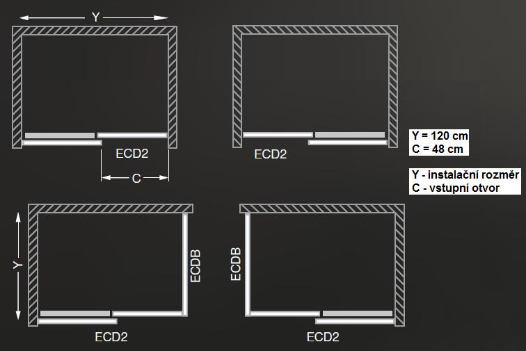 Sprchové dveře zasouvací dvoudílné pro instalaci do niky nebo pro kombinaci s boční stěnou ECDB.