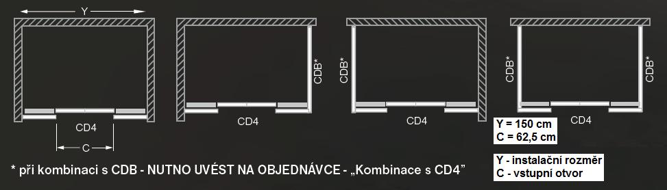 Sprchové dveře zasouvací čtyřdílné pro instalaci do niky nebo pro kombinaci s pevnou stěnou CDB.