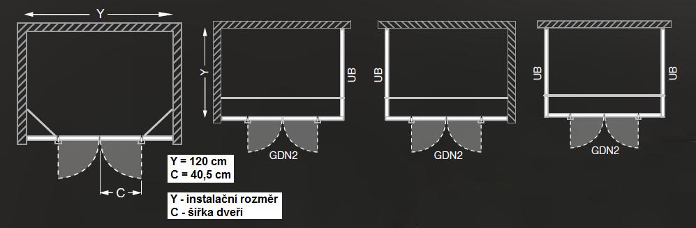 Pro kombinaci s pevnou stěnou UB jen do rozměru 150 cm.