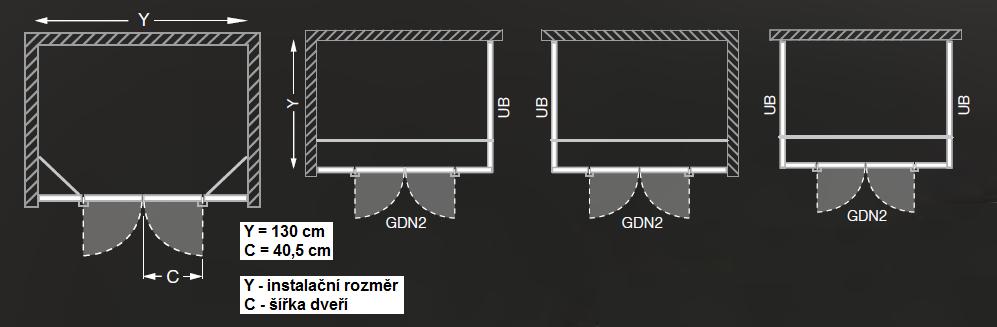 Pro kombinaci s pevnou stěnou UB jen do rozměru 150 cm.