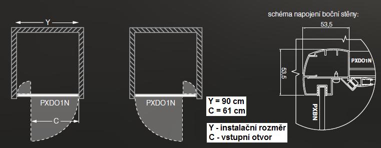 Sprchové dveře jednokřídlé pro instalaci do niky nebo pro kombinaci s pevnou stěnou PXBN.