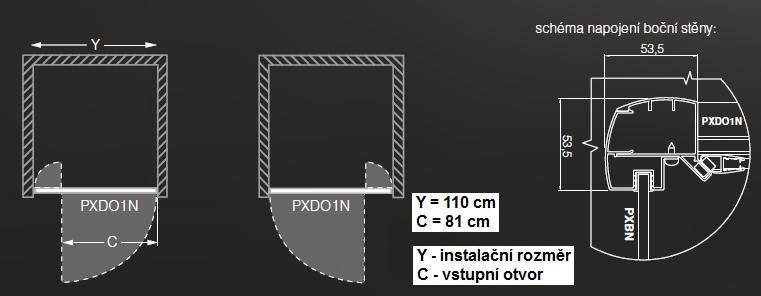 Sprchové dveře jednokřídlé pro instalaci do niky nebo pro kombinaci s pevnou stěnou PXBN.