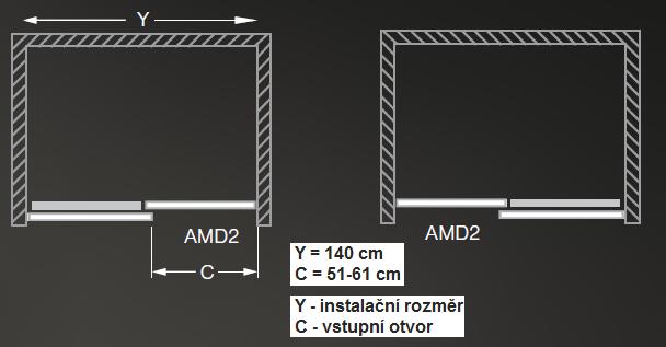 Sprchové dveře zasouvací pro instalaci do niky nebo pro kombinaci s pevnou stěnou AMB.