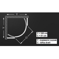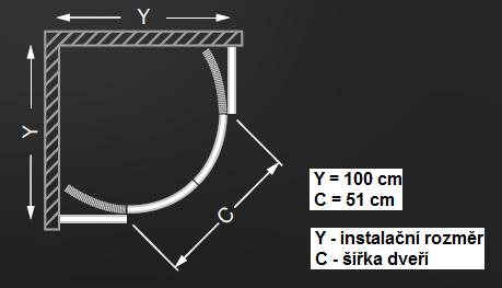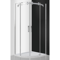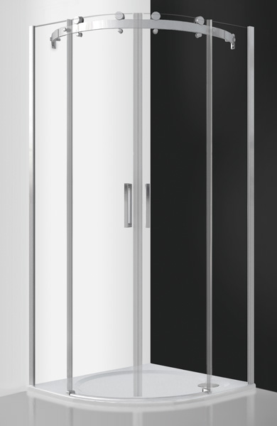 Sprchový kout čtvrtkruhový s posuvnými dveřmi.