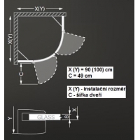 Sprchový kout čtvrtkruhový s dvoukřídlými dveřmi .