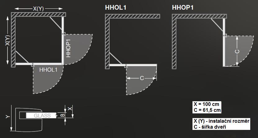 | 2335-271-100000L-00-02 | Sprchové jednokřídlé dveře pro čtvercový sprchový kout HHOL1 100 LH/ČS |