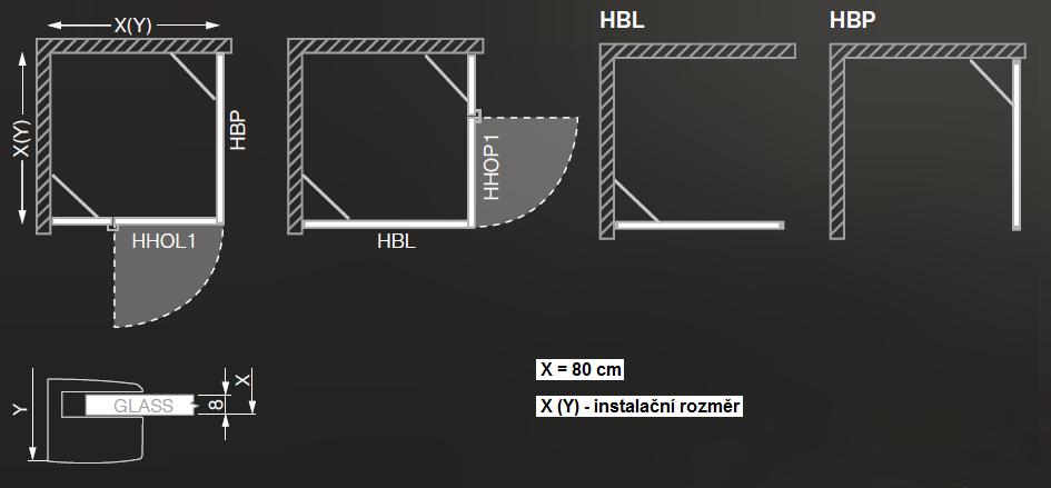 | 2335-271-800000P-00-02 | Sprchové jednokřídlé dveře pro čtvercový sprchový kout HHOP1 80 LH/ČS |
