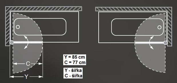 Vanová zástěna oboustranně otevíratelná.