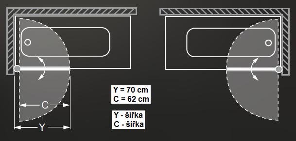 Vanová zástěna oboustranně otevíratelná.