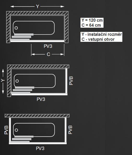 Vanová zástěna s posuvnými dveřmi pro čelní vstup Roltechnik PV3 120