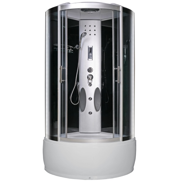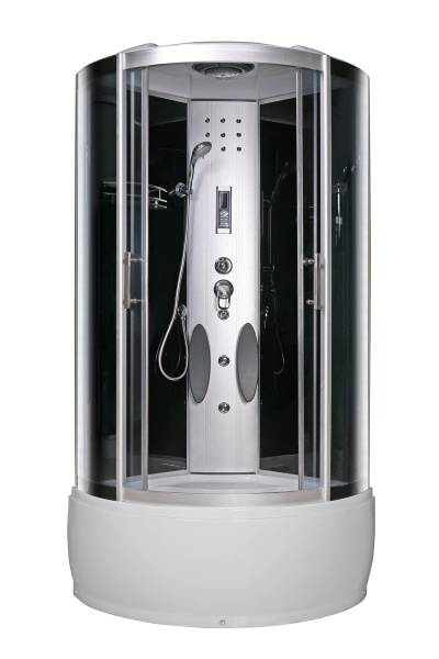 • Kabina je vybavena ovládacím panelem s možností připojení telefonu, rádia, ventilátoru, halogenového osvětlení, skleněné police s zábradlím