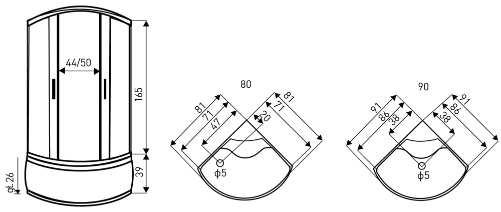 Čtvrtkruhový sprchový kout Kerra BERGEN 80