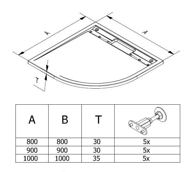 Sprchové vaničky ILA WIR jsou čtvrtkruhové samonosné vaničky s možností postavení na nožičky i na podlahu. Výška ustavovacích nožiček sprchové vaničky je 65 - 105 mm. Maximální rozměry jsou 1000 x 1000 mm.