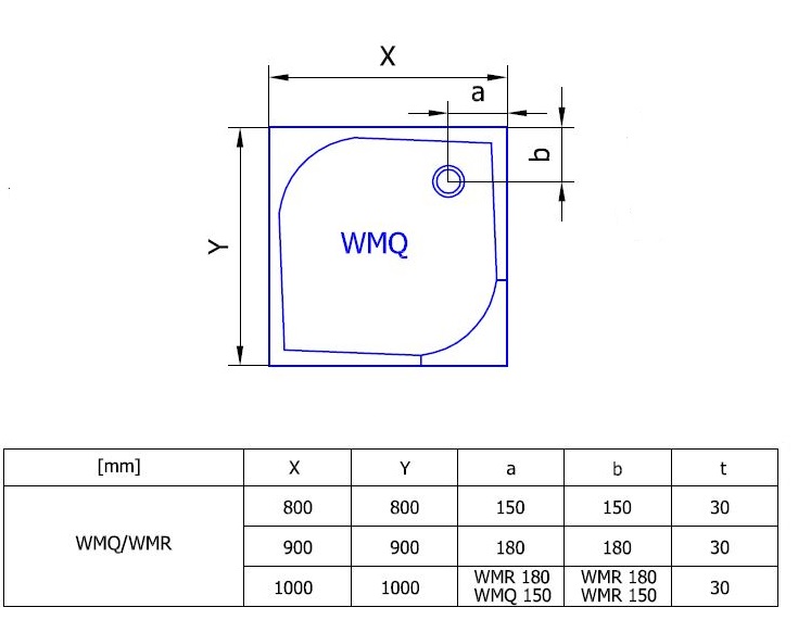 Sprchové vaničky Marblemate WMQ jsou čtvercové samonosné vaničky s možností postavení na nožičky i na podlahu. Výška ustavovacích nožiček sprchové vaničky je 65 - 105 mm. Maximální rozměry jsou 1000 mm.