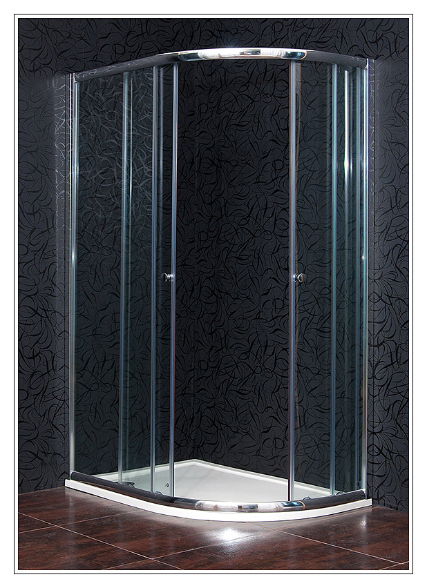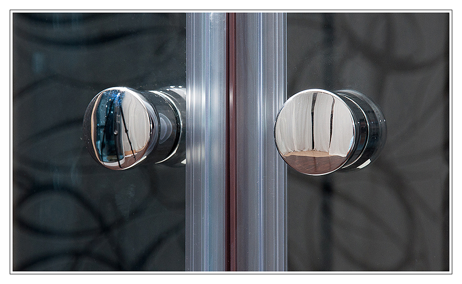 Do chromovaného ALU rámu je vsazeno 6 mm silné bezpečnostní čiré sklo, které je navíc opatřeno úpravou proti vodnímu kameni.