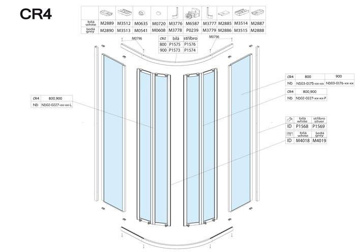 Náhradní díly na sprchový kout čtvrtkruhový s posuvnými dveřmi Roltechnik CR4 80