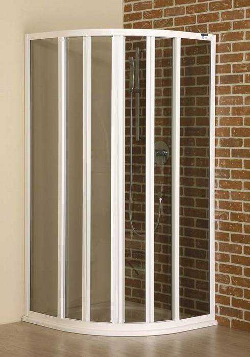 Sprchový kout čtvrtkruhový s posuvnými dveřmi, výplň chinchilla.