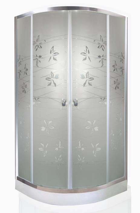Sprchový kout čtvrtkruhový s posuvnými dveřmi, výplň chinchilla.
