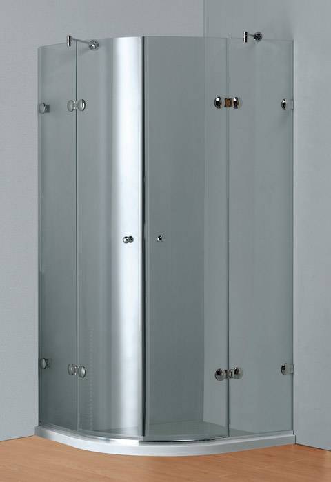 Sprchový kout čtvrtkruhový s dvoukřídlými dveřmi, výplň čiré sklo .