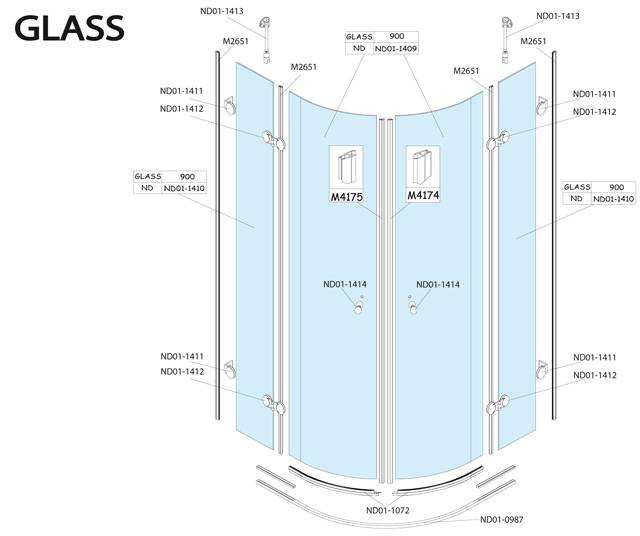 Náhradní díly na sprchový kout čtvrtkruhový s dvoukřídlými dveřmi Roltechnik GLASS 90