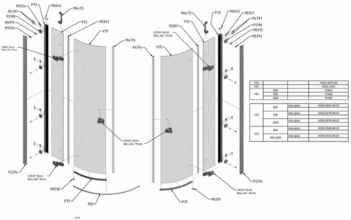 Náhradní díly na sprchový kout čtvrtkruhový s dvoukřídlými dveřmi Roltechnik GR2 90