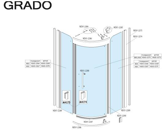 Náhradní díly na sprchový kout čtvrtkruhový s jednokřídlými dveřmi Roltechnik GRADO 80