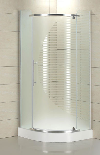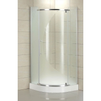 Sprchový kout čtvrtkruhový s jednokřídlými dveřmi, výplň transparent/potisk.
