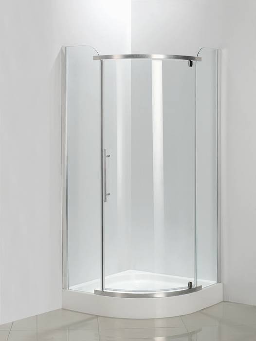 Sprchový kout čtvrtkruhový s jednokřídlými dveřmi, výplň transparent/potisk.