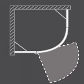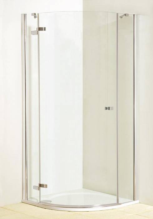 Sprchový kout čtvrtkruhový s jednokřídlými dveřmi, výplň čiré sklo.