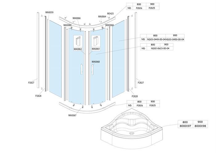 Náhradní díly na sprchový kout čtvrtkruhový s posuvnými dveřmi pro hlubokou vaničku Roltechnik PORTL