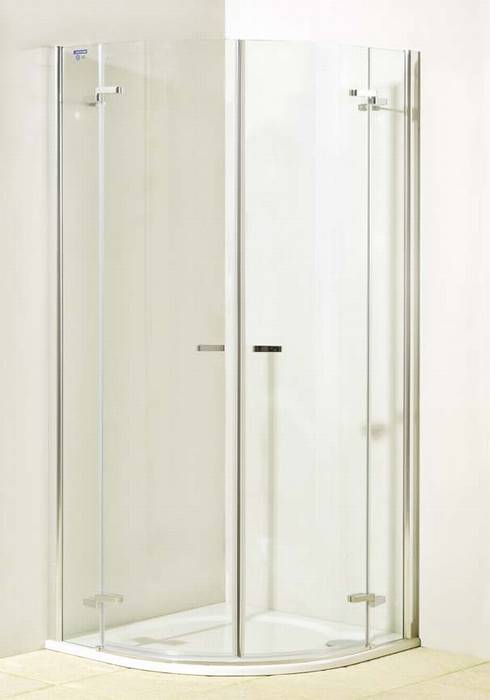 Sprchový kout čtvrtkruhový s dvoukřídlými dveřmi, výplň transparent/satinato.