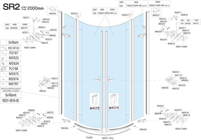 Náhradní díly na sprchový kout čtvrtkruhový s dvoukřídlými dveřmi Roltechnik SR2 100