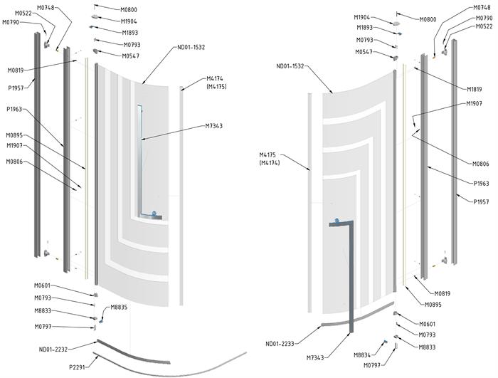 Náhradní díly na sprchový kout čtvrtkruhový s dvoukřídlými dveřmi Roltechnik TR1 DESIGN + 90