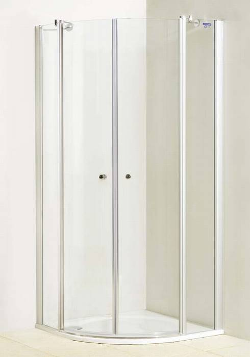 Sprchový kout čtvrtkruhový s dvoukřídlými dveřmi, výplň transparent/satinato.